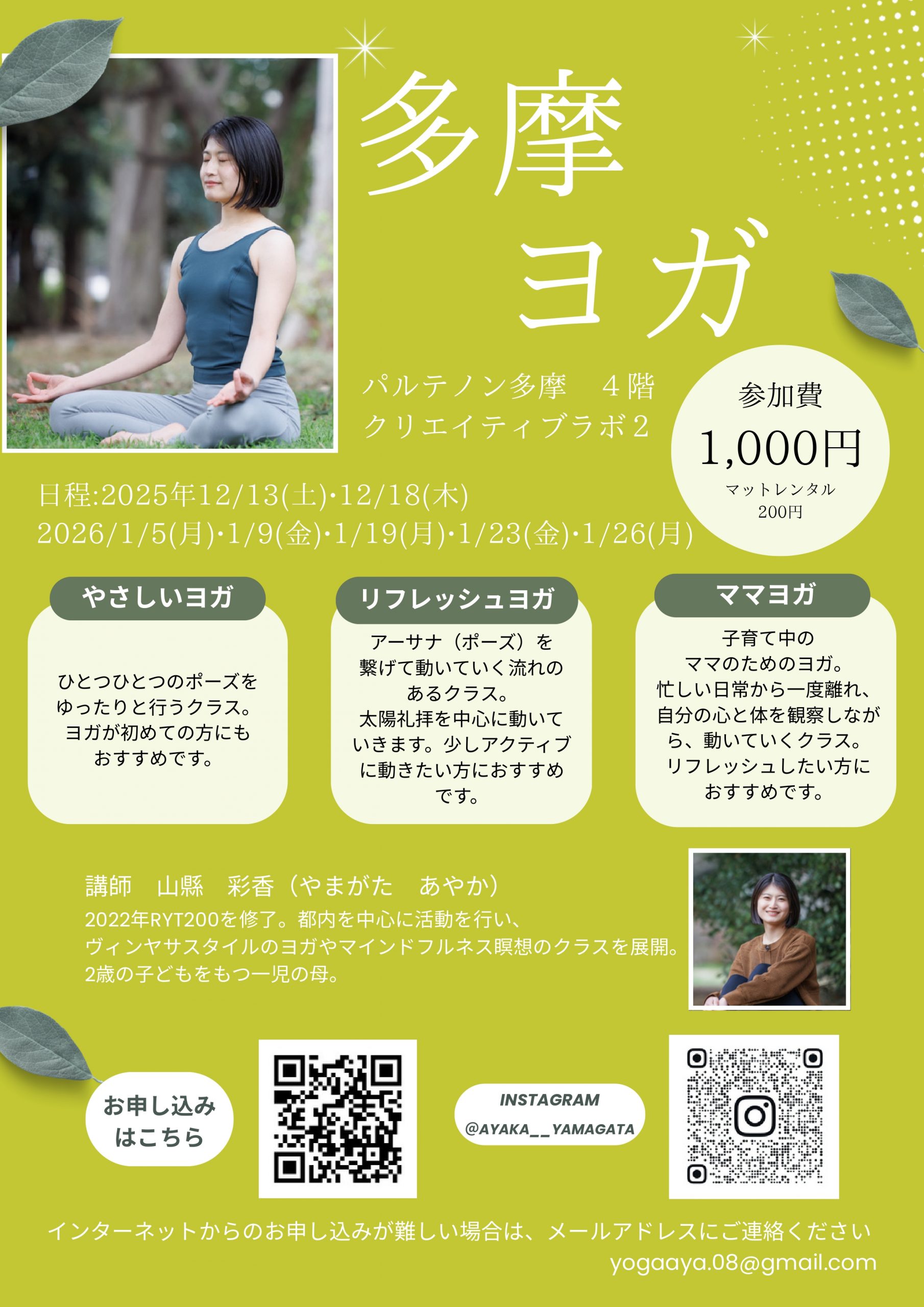 メールアドレス:yogaaya.08@gmail.com