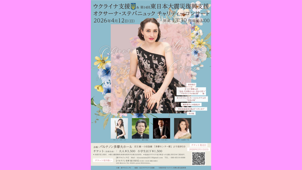 ウクライナ支援 & 第14回 東日本大震災復興支援オクサーナ・ステパニュック チャリティーコンサート
