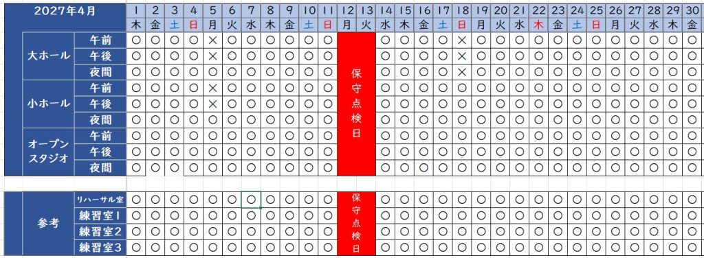 ・2027(R9)年4月利用分 大ホール・小ホール・オープンスタジオ
