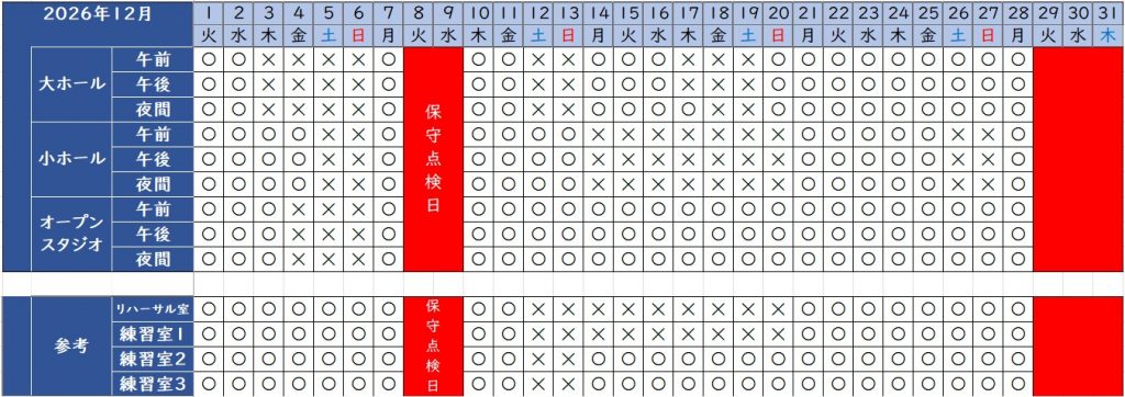 ・2026(R8)年12月利用分  大ホール・小ホール・オープンスタジオ