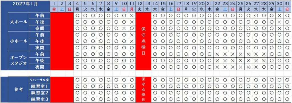・2027(R9)年1月利用分  大ホール・小ホール・オープンスタジオ
