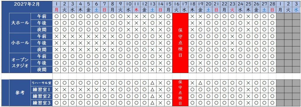・2027(R9)年2月利用分 大ホール・小ホール・オープンスタジオ